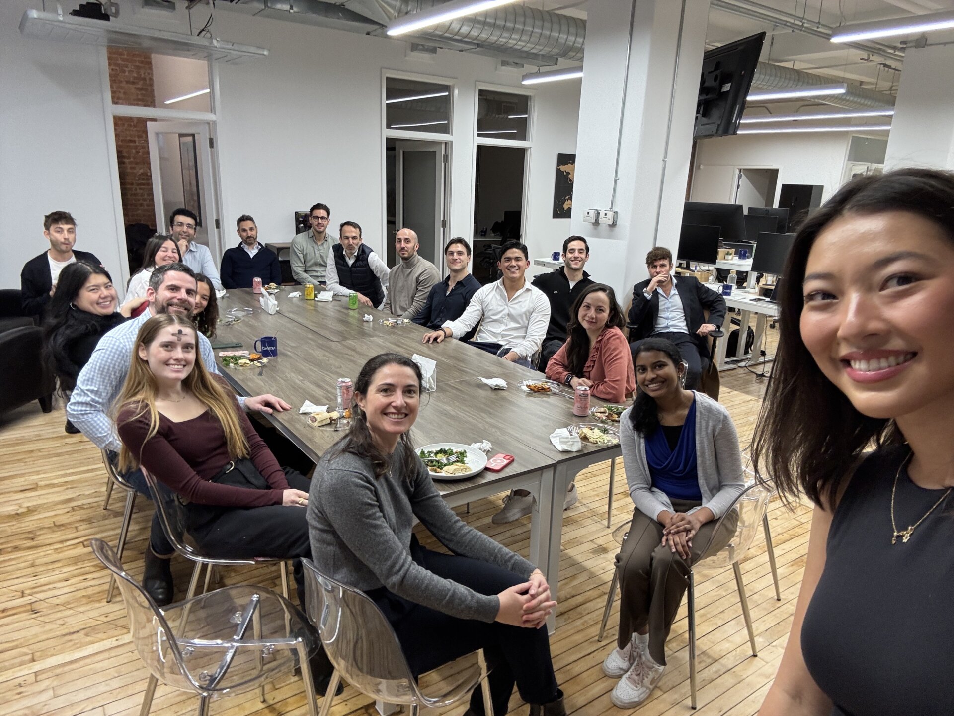 Gathering around the table in the NYC office